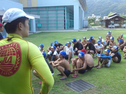 ライフセービング終了。津波避難訓練も兼ねて、宿舎に帰りました。全員、健康安全です。