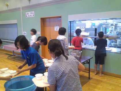 7月27日(日) 1学年岩井臨海学園 1日目 夕食の片付けもきれいにできました。