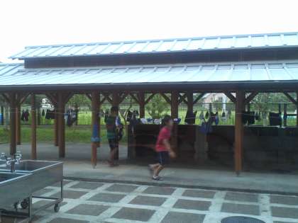 水着も自分で干します。乾いて回収の人たちもいます。