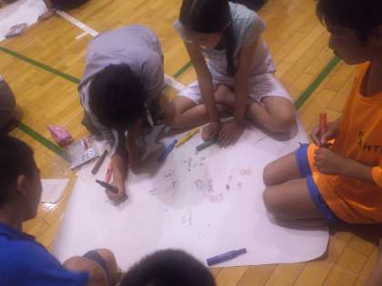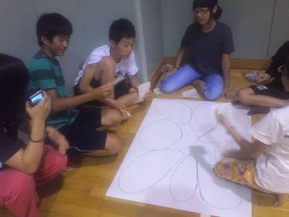 グループエンカウンター「宝さがし」…各自のヒントカードから宝島を造り上げ、宝をさがす。やや難しい内容ですが、仲間内の協力やコミュニケーションが解決?に結びつくのでしょうか?