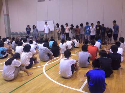 さて、いよいよ最後のレクリエーションです。生徒のレクリエーション係が自主的に用意したものです。意外にクラシカルなゲームで、保護者の方も分かるものですね。少し、アレンジしていますが。