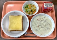 味噌ラーメン・大学いも・菊花みかん・牛乳