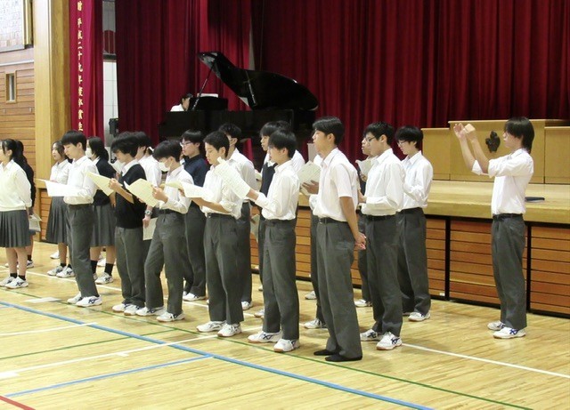 3年A組の 「 手紙 」 担任の先生も加わり、とても素敵な歌声を体育館に響かせていました。