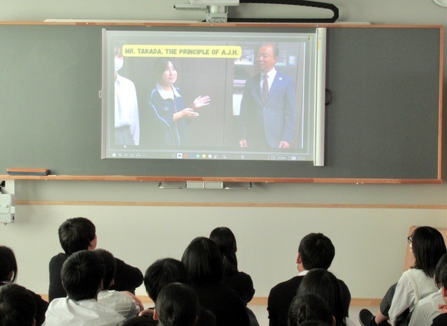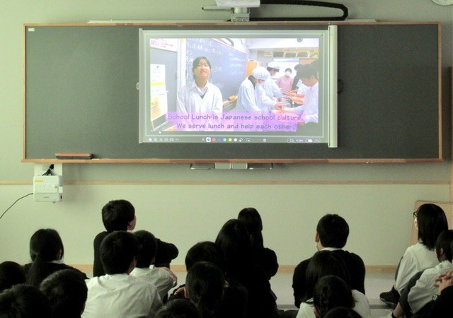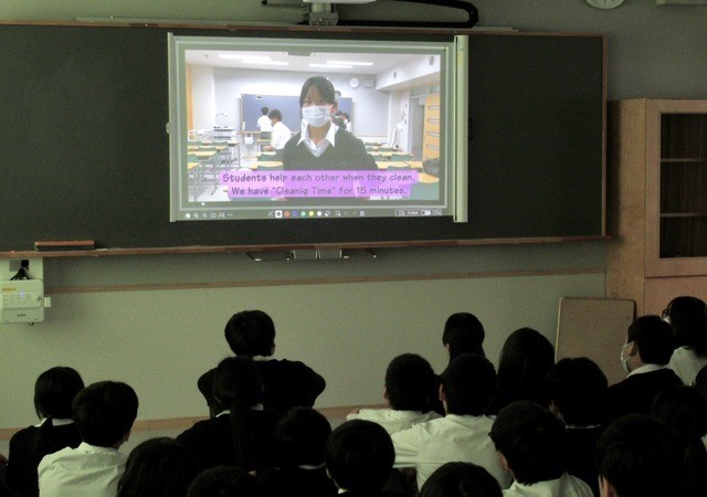 現地の学校で、飛鳥中学校を紹介する動画を生徒たち ( SHS交流実行委員 ) が作成したとのこと。