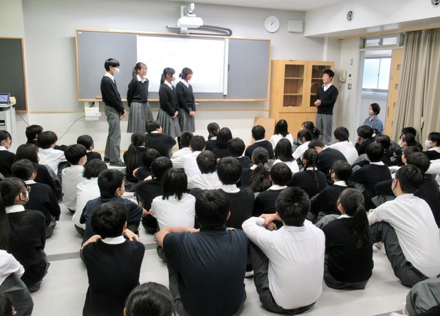 今日の授業では、学年主任の先生が、ご自身の出産体験を交えながら 「 生命の尊さ 」 について語りかけ、生徒たちは、 『 「 生きていること 」 を大切にするってどういうことだろう 』 という問いに向き合っていました。
