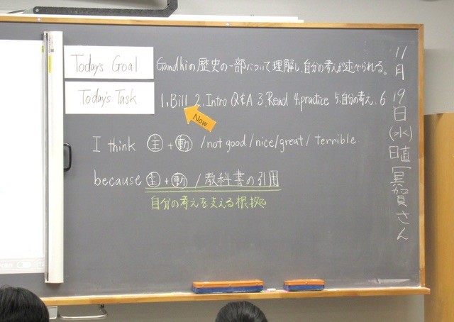 先日の 「 私立高校長との教育協議会 」 で 『 ( ある私立高校から ) 本校は、英語の授業だけでなく、他の教科もオールイングリッシュで行うコースがあります。 』 との説明を聞きましたが、今日の授業を参観しながら、その言葉を思い出しました。