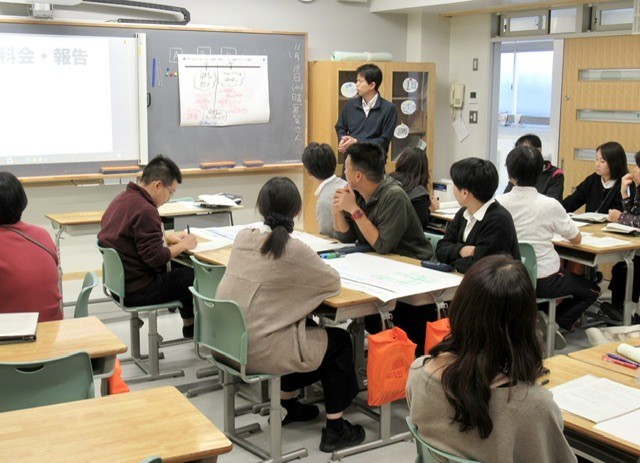 写真8・9枚目、授業後、分科会ごとに成果と課題を話し合い、全体で共有しました。