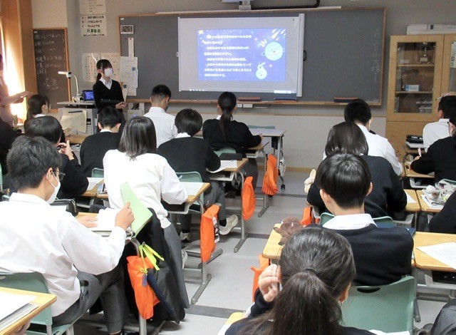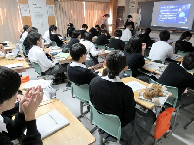 担当の先生から 「 定期考査後に自分の調べたものを発表し、相互学習に発展させる予定です。 」 とお聞きしていましたが、なかなか、その授業に立ち会う機会がありませんでした。