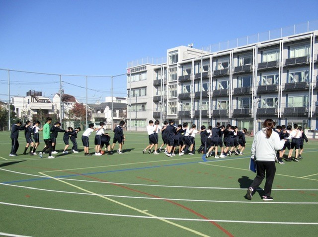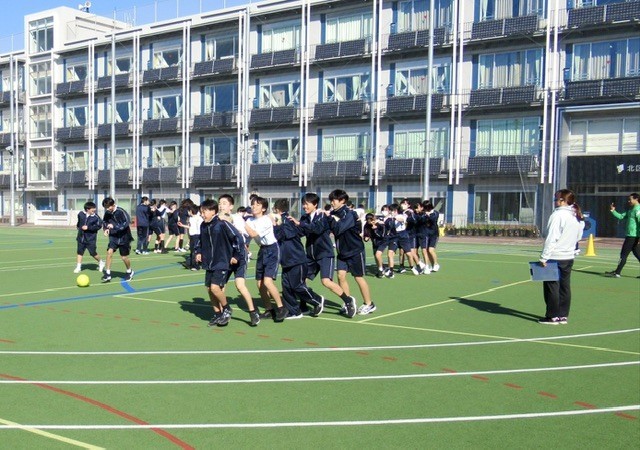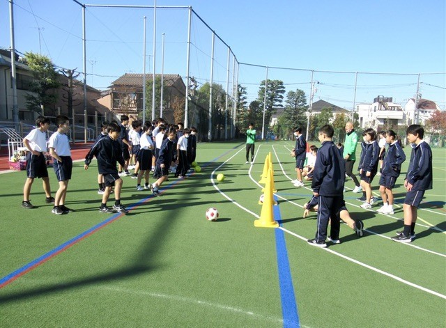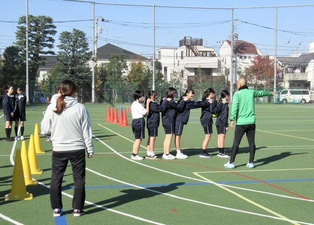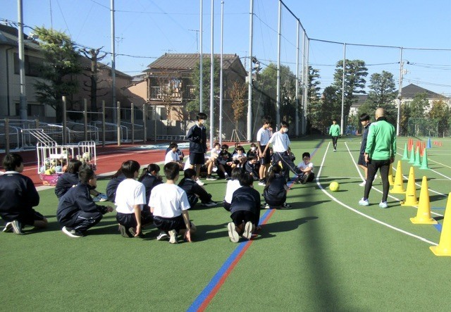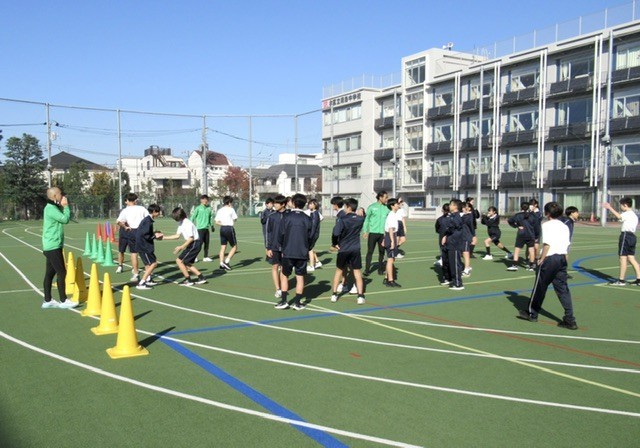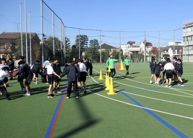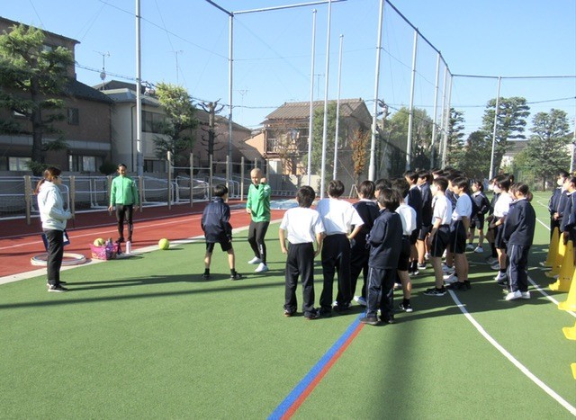 本日の保健体育では、 「北区体力向上推進事業 」 を活用し、 『 東京ヴェルディ 』 の方を講師に授業が行われました。