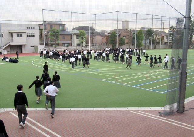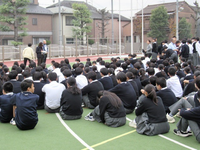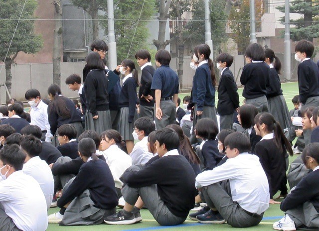 集まってきた生徒たちは、おしゃべりをすることなく、訓練の大切さを自覚し取り組んでいました。