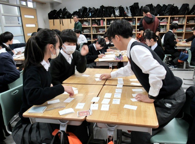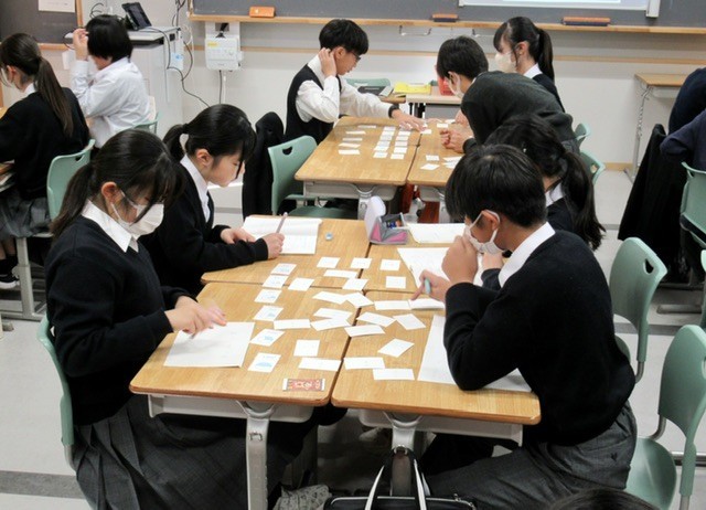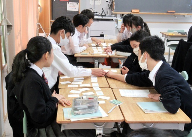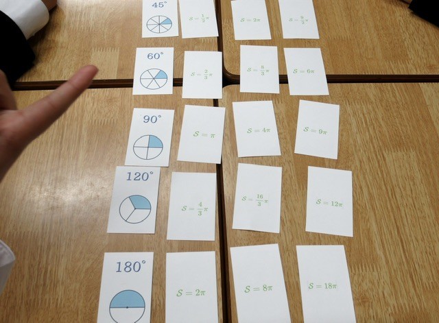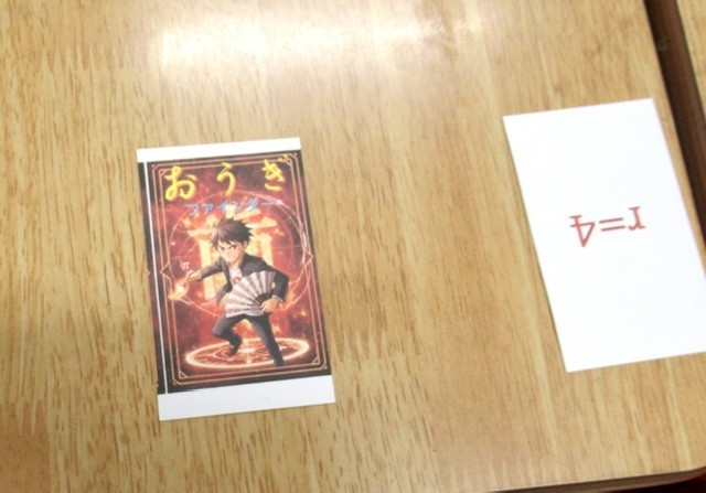 写真 : 2枚目、担当の先生が作成したカードが、班ごとに配られます。市販のカードではなく、数学の授業の一環として、生徒たちが楽しみながら学習できるカードになっています。