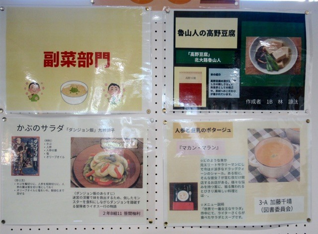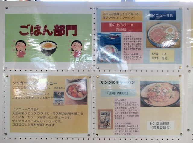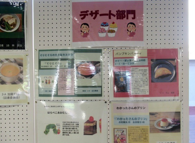 図書委員会が 「 本から生まれたレシピ 」 を 「 ごはん部門 」・「 副菜部門 」 ・ 「 デザート部門 」に分け、給食の献立に取り入れてほしいものを全校生徒にアンケートする企画です。