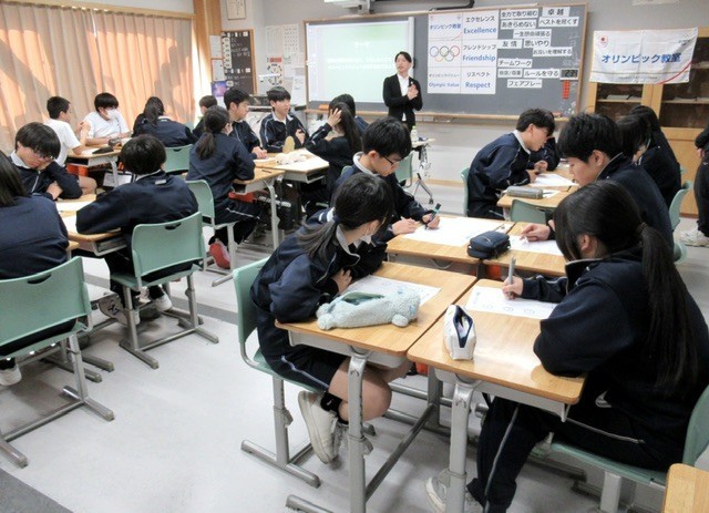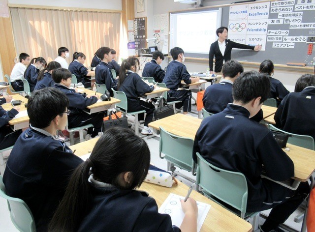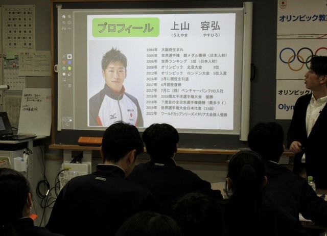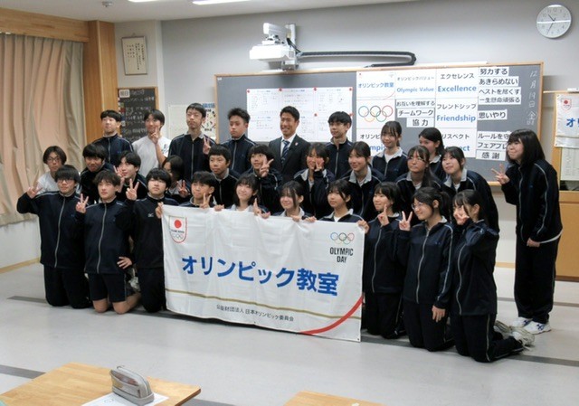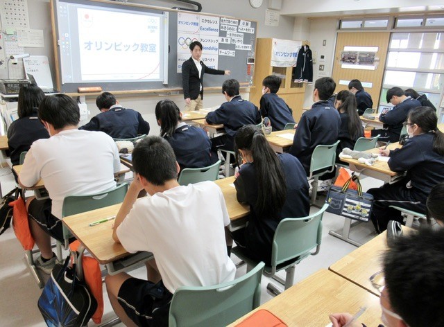 これは、 「 オリンピアンの生き方や考え方に触れることで、夢に向かって努力したり、困難に立ち向かったりすることの大切さ、フェアプレイや助け合い精神といったオリンピックの理念や価値を伝えること 」 を通して、生徒たちと一緒に活動したり、考えたりする特別な授業です。