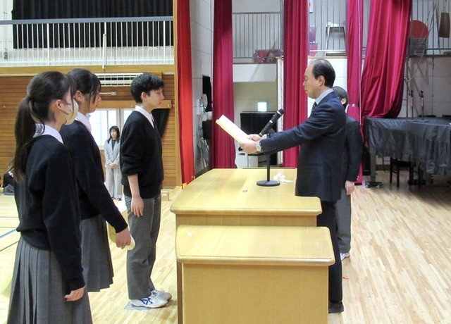 学級の先生以外にも飛鳥中の教職員が参観する中、これまでの練習の成果を発揮し、しっとりとした心地よい音色を響かせていました。