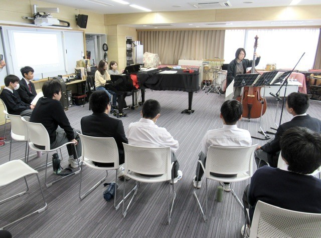 写真:4枚目、副校長先生と担任の先生による 「 情熱大陸 」 の演奏に、生徒たちは感動している様子でした。演奏後、大きな拍手と 「 アンコール 」 の声。