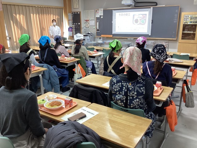 本行事は、学校給食への理解を深めるとともに、子供たちの「食」「健康」について考えていただく機会として、学校保健委員会との合同開催により、保護者の皆様を対象に行いました。今回は、15名の方にご参加いただきました。