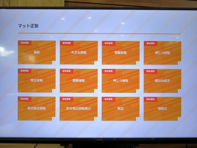 また、写真2枚目のとおり、『 マット運動 』 には、「 前転 ・ 後転 ・ 開脚前転 ・ 伸しつ後転 ・ 倒立前転 ・ ・ ・ 」 とたくさんの技があります。