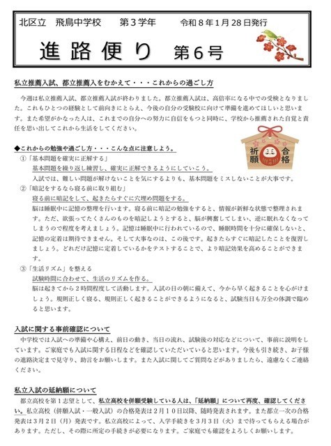 進路便りNO.6を配信します ( 3年生向けの内容となっています ) 。