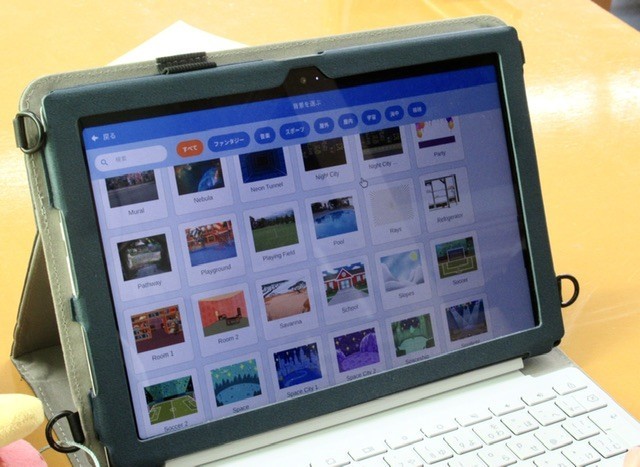 担当の方から 「 小学生が90分くらいかけてプログラムするものですが、皆さんは中学3年生なので、15分くらいでやります。 」 に、生徒たちから 「 え~ ! 」 の喜び? の声。