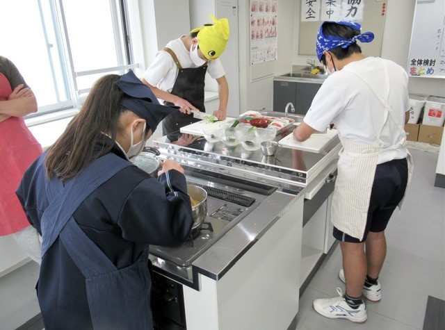 D組 家庭科 調理実習の様子です。