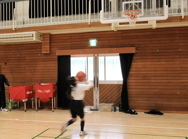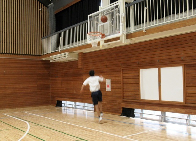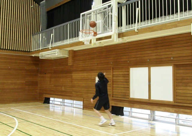 体育館を反面ずつ使い、A組は 「 ダンス 」( 写真 : 1~4枚目 ) を、D組は 「 バスケットボール 」 ( 写真 : 5~7枚目 )  に取り組んでいます。