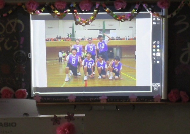 さらに、現2年生が入学し、合奏練習や校外学習 ・ スポーツ大会 ・ ・ ・ など、 一緒に取り組んできた活動の様子次々と映し出されました。