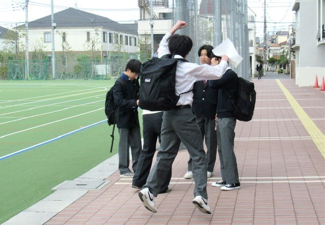 同じクラスのメンバーを見つけて駆けだす生徒、仲の良い生徒と同じクラスになったのでしょうか? 喜びを隠せない生徒 ・ ・ ・ と。