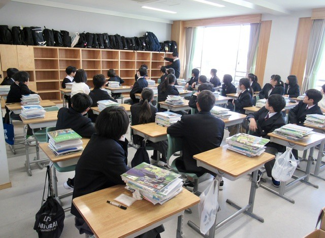 これから1年間あるいは3年間使用する教科書が配布されています。
