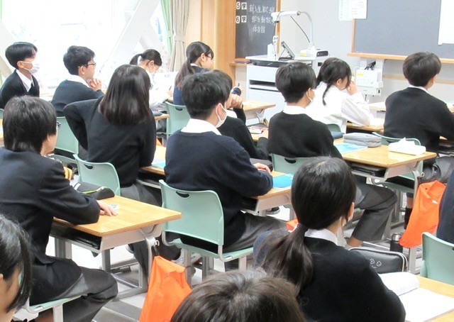 この後、「 2年生になって 」 の作文の構想に取り組むようですが、写真のとおり、生徒たちの聞く姿勢を見ていて、進級した自覚やこれから頑張ろうという気持ちが、とてもよく伝わってきました。