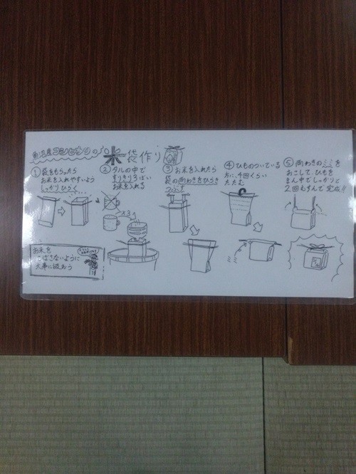 お米詰め体験。魚沼産コシヒカリお土産です。