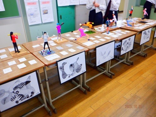 第十四中の文化祭の展示作品群は見ごたえのあるものです。