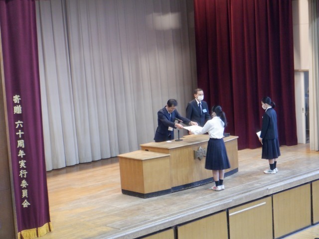 足立区立読書感想文コンテストで佳作を頂きましたので表彰されました。