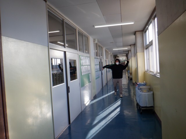 学校に不審者が入ってきました。各教室で侵入されないようにバリケードを張って頑張りました。