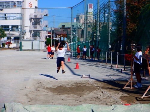 校庭では2年生が走り高跳びと走り幅跳びの授業をしていました。