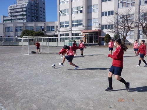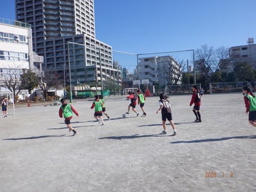 北風は冷たいのですが、陽射しがあり青空のもと2年生が校庭でサッカーに取り組んでいました。
