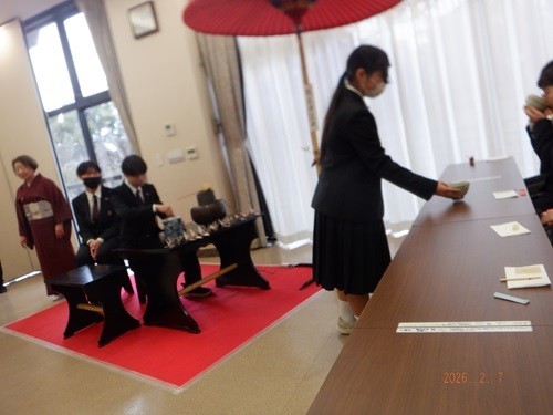 2/7(土)に足立区立中学校の茶道部が桜花亭に集まり発表会を行いました。