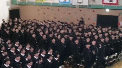 三年生の呼び掛けに1.2年生は答えることが出きる様に自覚を持って進級して下さい。