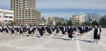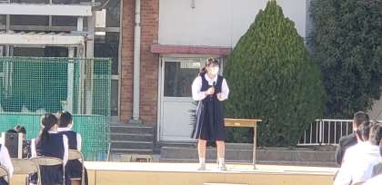 指揮者の方から校庭で歌うので反響番がないのでみんな大きな声で歌って下さいと指揮者の思いを伝えてくりました。