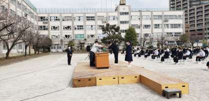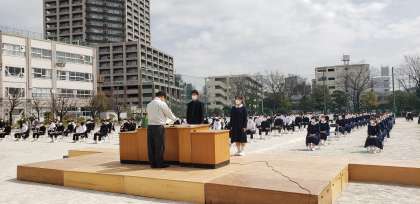 PTA会長から卒業生徒代表生徒に記念品の贈呈