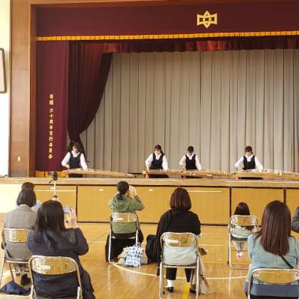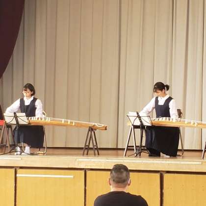 感染症が収束せず、まん延防止等重点措置が延長され、部活動の中止や制限の中での練習となりましたが、このたび卒業した3年生を含め、邦楽部の皆さんが、素敵な琴の調べを披露してくれました。