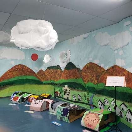 今年度の魚沼自然教室は、11月12日〜13日、感染症対策のため、湯の谷での分宿での実施となりました。夜、体育館では、クラス対抗のレクリエーション大会で大いに盛り上がりました。各クラスが、クラスごとにキャタピラーを作って、その中に人が入ってレースをしました。2年生にとって、思い出の1コマです。