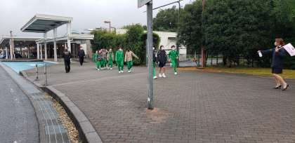 この後学校に向いますが、雨のため学校によらずにバスない解散の予定です。