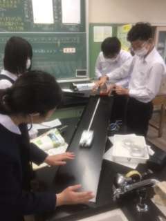 台車を斜面で走らせ、その速度の変化を調べました。
