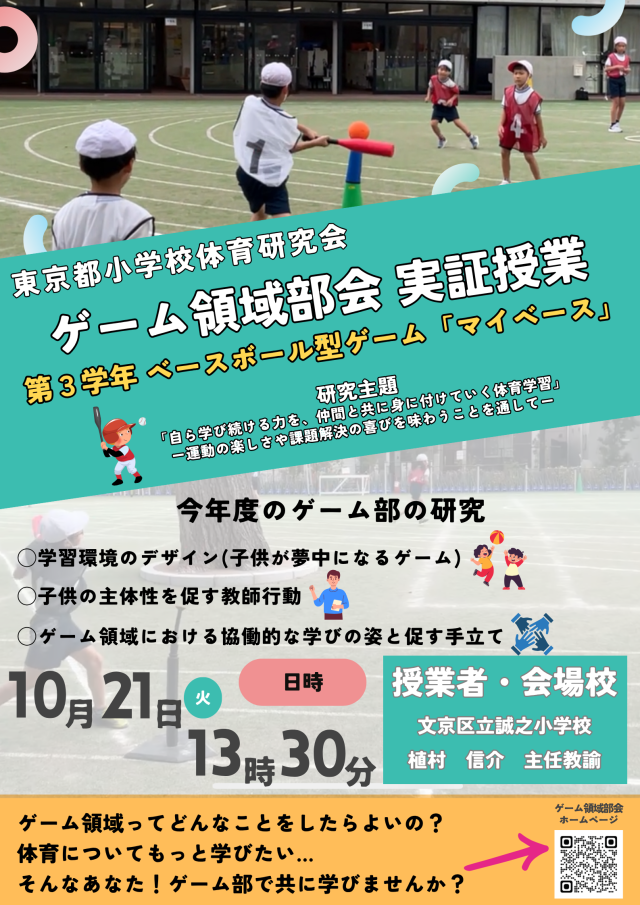 6月4日(水)文京区立誠之小学校で第3回ゲーム領域部会を行いました。前回に引き続き、実技研修として3年生のベースボール型ゲームの提案を行いました。実際に体を動かしながらゲームの良さや改善点を整理してい...