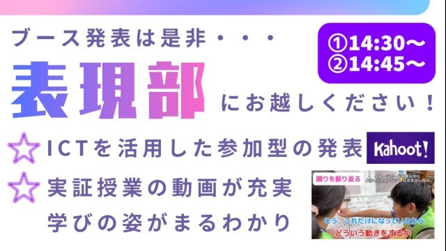 表現部では、ICTを活用し、皆様に参加していただきながら分かりやすい発表になるよう、絶賛準備中です!