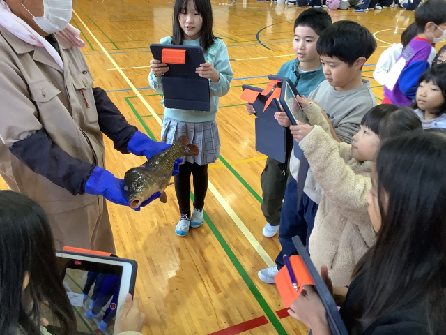 3年生 総合的な学習の時間 本物の魚に大興奮!
