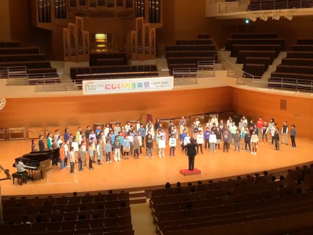 にじいろ音楽祭とは、市内の小学生約2300人が3日間に渡って集まる音楽の祭典です。