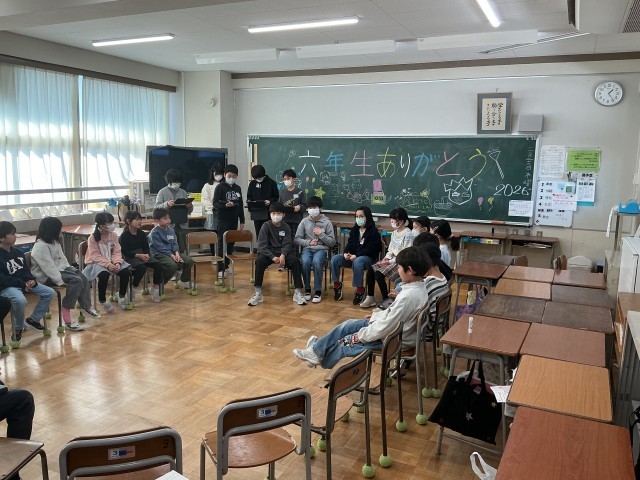 本日、四つ葉班(縦割り班)で「縦割り6送会」を行いました。