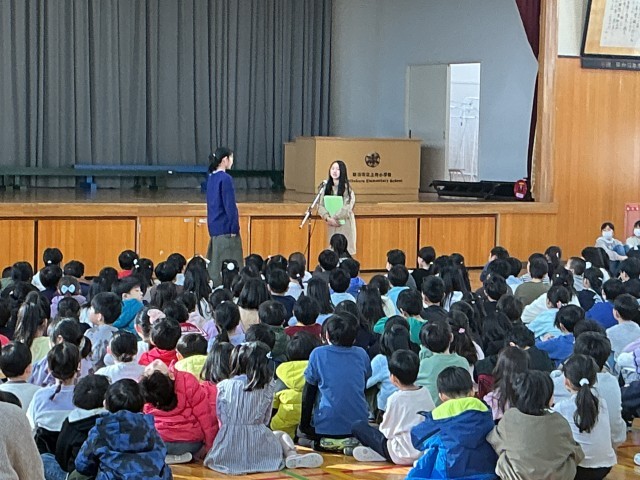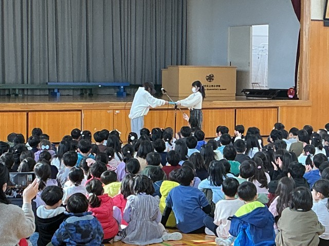 本日の児童朝会で委員会の引き継ぎ式が行われました。