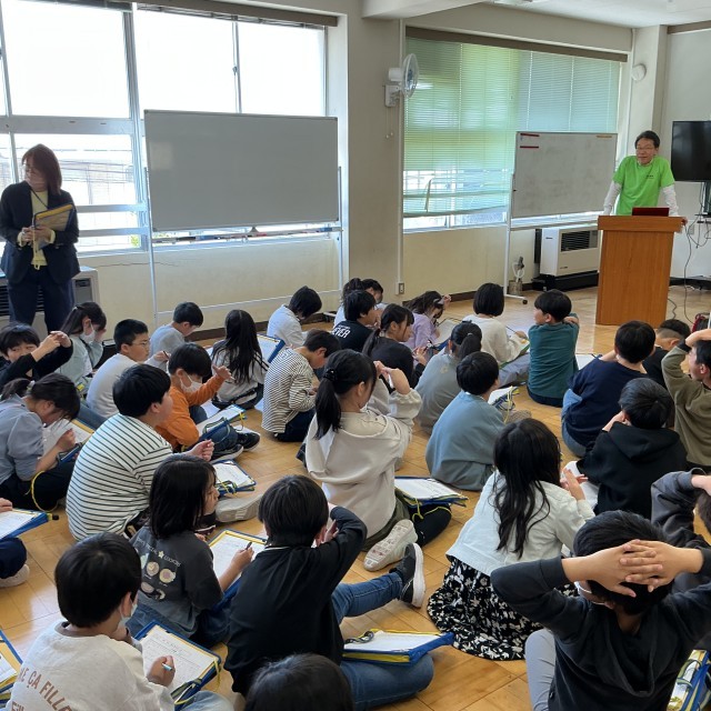 4年生の総合学習では,まず新潟市の魅力について尋ねました。そして,改めて,自分たちの住む地域にある鳥屋野潟の魅力がまだまだある事を感じました。4月24日に,早速ゲストティーチャーをお招きして,お話を伺いました。「実は昔は鳥屋野潟の水を飲んでいた」「観光地だった時代もあった」と聞き,驚きの声をあげていました。